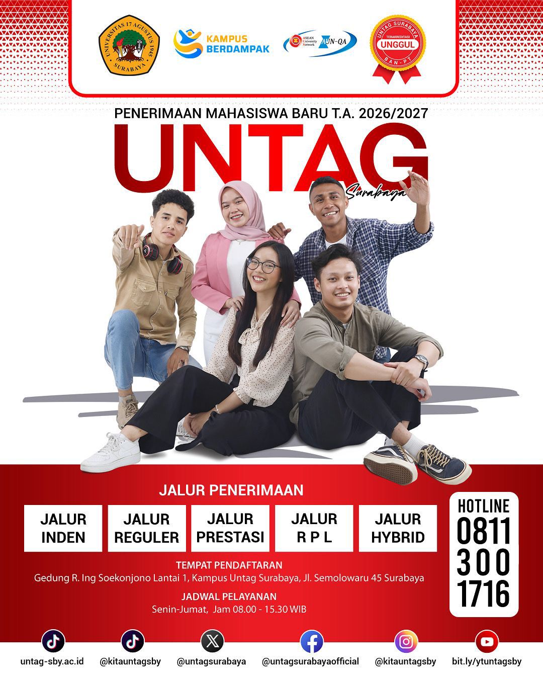 Manfaatkan kesempatan potongan biaya DPP hingga 100% (S&K berlaku). Daftarkan dirimu sekarang di pmb.untag-sby.ac.id?