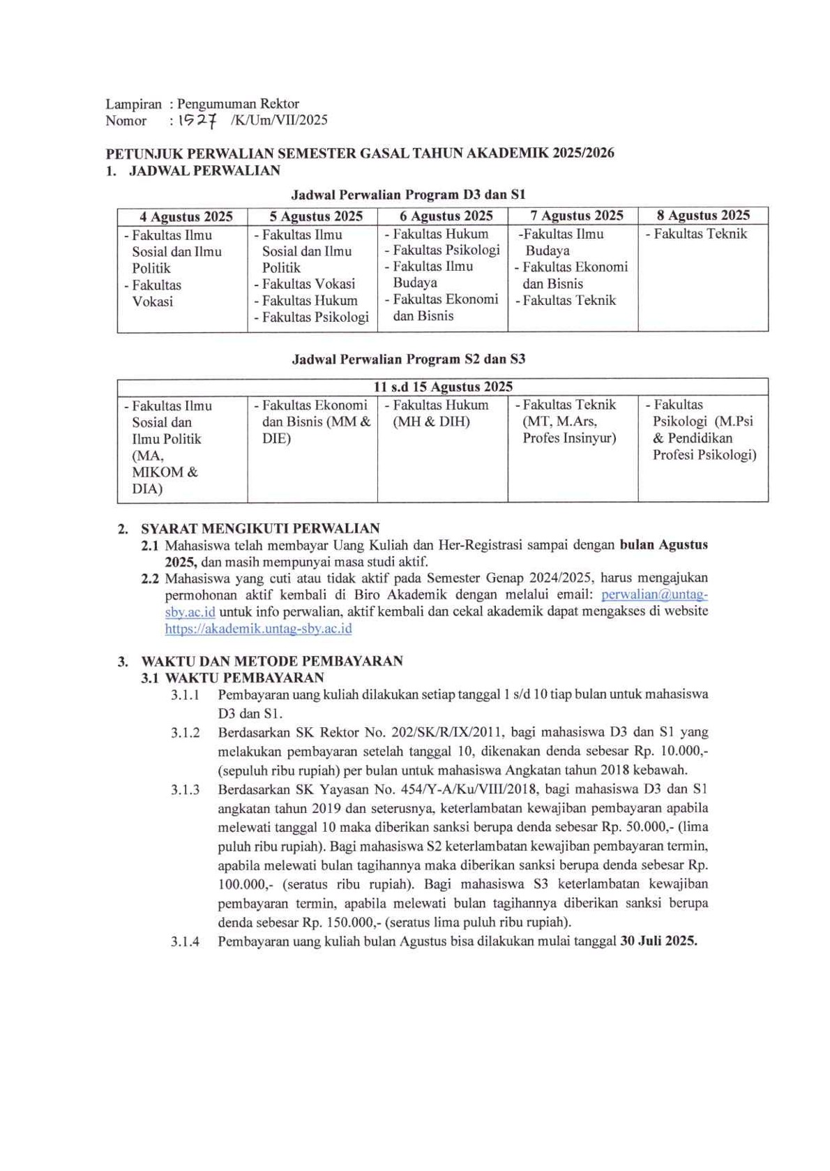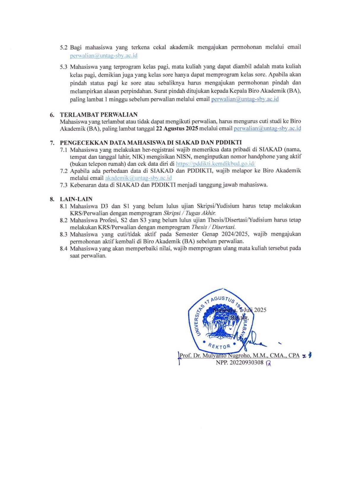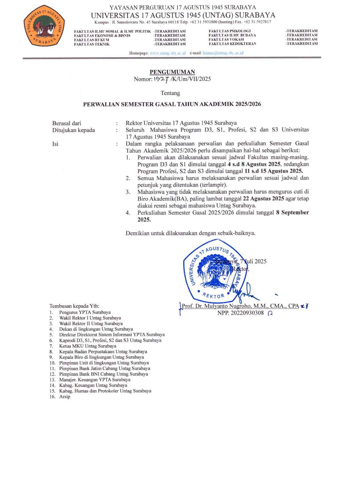 Berikut ini kami informasikan Perwalian Semester Gasal Tahun Akademik 2025/2026